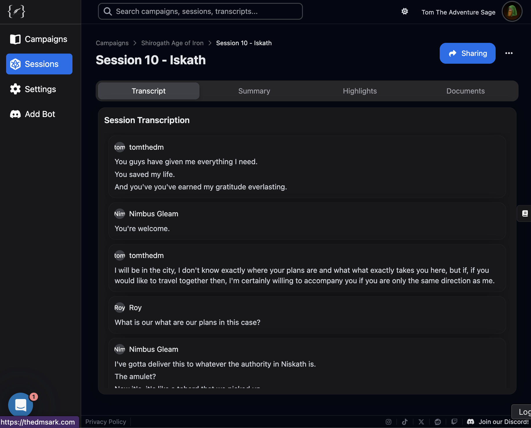 The ARK’s Discord bot transcribes your session in real time, automatically distinguishing between party members and effectively taking notes for you as the game unfolds.